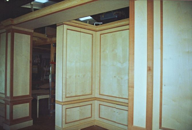 Sockel + Kranz: Eiche dunkel gebeizt und lackiert